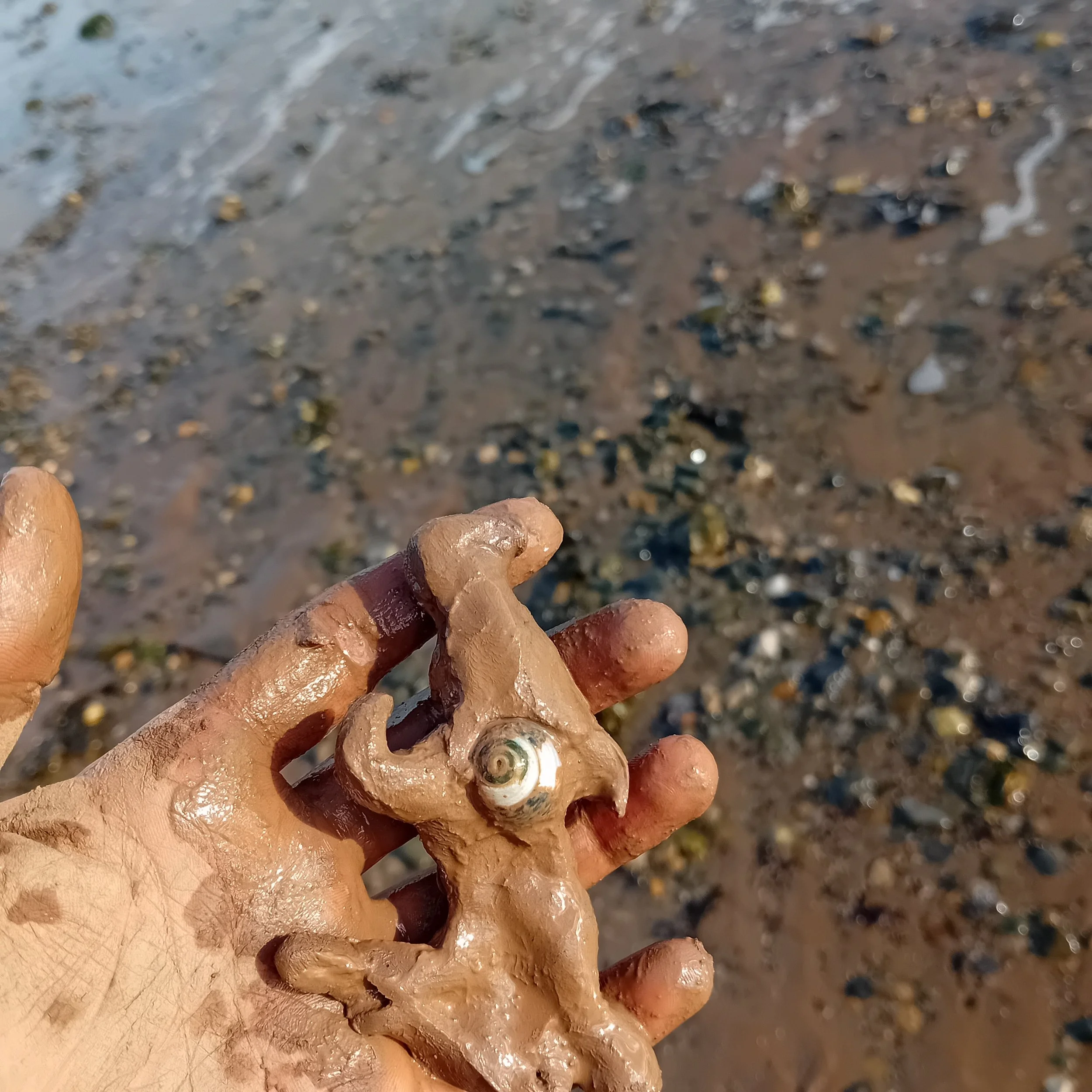 wedi dod o hyd i bren drifft, carreg traeth, clai clogfeini, tywod, dwylo, cefnfor, 2026